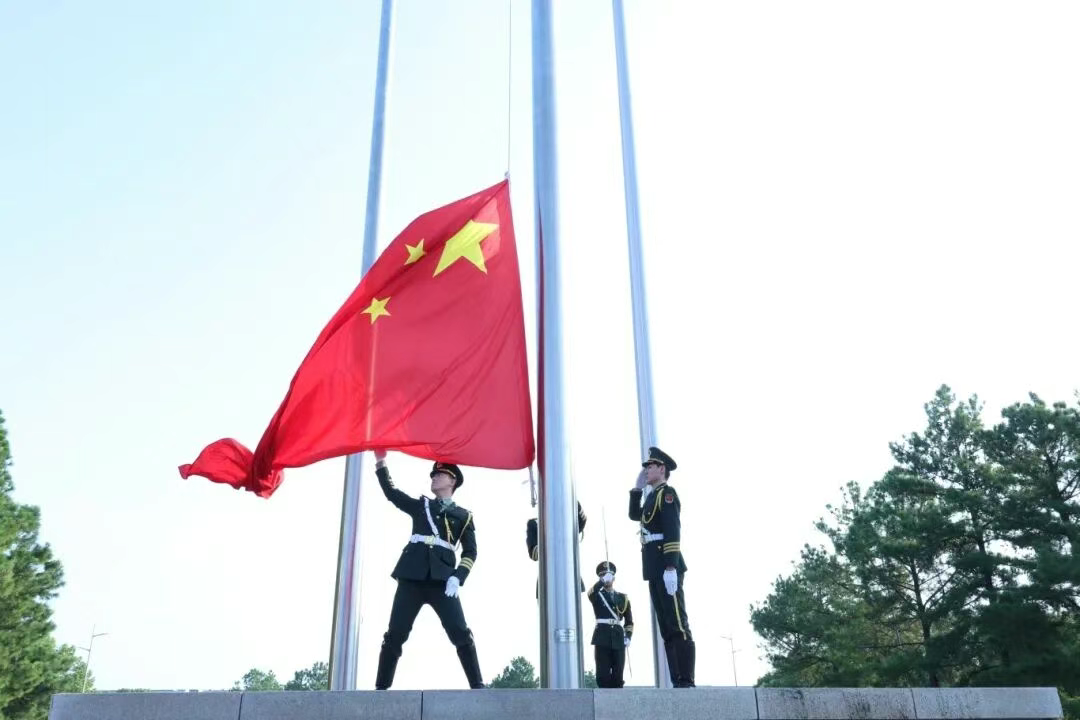 师生们庄严肃立,行注目礼,齐声高唱国歌,嘹亮的歌声响彻同济校园,
