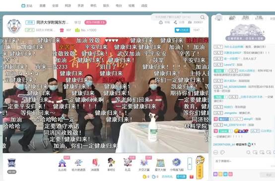 At 3:00 p.m. on February 25, 2020, Tongji University’s special class of the Communist Youth League opened in Wuhan Fangcang Hospital (a mobile cabin hospital converted from the China (Wuhan) Cultural Expo Center) under the theme Gathering the Positive Energy of Youth and Uniting Together to Fight the Pandemic. The speakers were members of the National Emergency Medical Rescue Team and the China International Emergency Medical Rescue Team (Shanghai) of Shang East hospital, Tongji University, these having fought on the front line to treat patients at the makeshift hospital. About 200,000 young students from Shanghai colleges and universities such as Tongji University listened to the online class through the video website: bilibili. They interacted with the medical team members on the front line and sent heartfelt respects and best wishes.