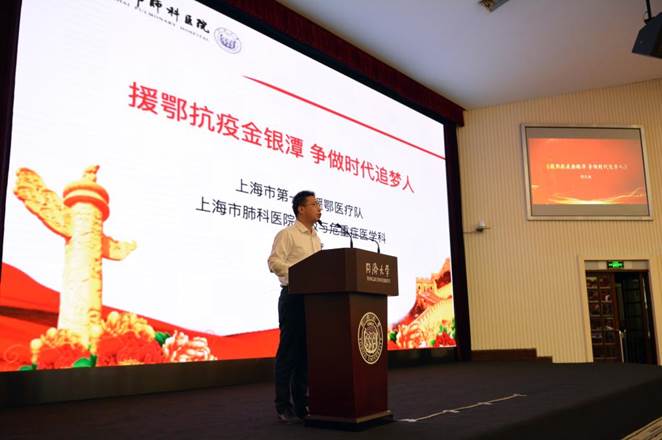 Five outstanding young people who participated in the fight against the pandemic in various ways were invited to the report meeting to share what they saw, heard, and felt on the front line, telling their touching stories of mutual support and joint efforts with their families, colleagues, patients, and volunteers to overcome the difficulties. They are: CHENG Kebin, Assistant Director Physician and Director of RICU of the Shanghai Pulmonary Hospital, and Deputy Head of the third group of the first batch of Shanghai medical teams to assist Hubei in the North Third Ward (ICU) of Wuhan Jinyintan Hospital; HUI Wei, Head Nurse of RICU of the Shanghai Tongji Hospital and Head of the nursing group of the first batch of Shanghai medical teams to assist Hubei in the North Third Ward of Wuhan Jinyintan Hospital; HUANG Guoxin, Chief Pharmacist of the Shanghai East Hospital and Chief Pharmacist of the Fangcang Hospital (Mobile cabin hospital) transformed from China (Wuhan) Cultural Expo Center; WANG Yujia, Research Assistant of Prof. ZUO Wei’s team of Tongji’ School of Medicine; and WU Wenjie, an undergraduate of 2016 from the College of Architecture and Urban Planning and a representative of the “Tongji heroes in harm’s way” Back-end Assurance Commando. These five young heroes shared generously their themes of “Helping Hubei to fight against the pandemic and striving to be dreamers of the times,” “No country, no home!--Being the heroes in harm’s way,” “Memories in Wuhan’s Fangcang Hospital transformed from China (Wuhan) Cultural Expo Center,” “Students of the School of Medicine race against the clock to fight the pandemic by tackling problems in scientific research,” and “Tongji youths make concerted efforts to fight against the pandemic with warmth,” respectively.