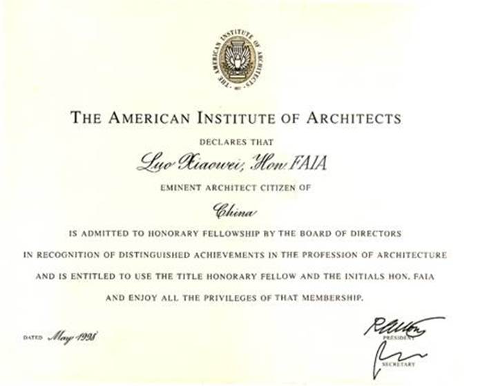 She was one of the first scholars in China to suggest the study of foreign architectural history must break the “Western-centrism.” She has long broadened her horizon beyond the West to Islamic and Third World architectures. LUO served as editor-in-chief with many world-renowned architectural theorists on the book, 20th Century World Architecture Boutique Collection, which she edited for the 20th World Congress of Architects of the International Union of Architects (UIA). In 1998, she was selected as Honorary Fellow of the American Institute of Architects (AIA).