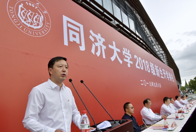 President CHEN delivered a speech to welcome new students from both home and abroad to join the Tongji family. According to him, since the establishment of Tongji University in 1907, the university has upheld its name as an institution dedicated to the country no matter what ups and downs it went through. It has been committed to its mission of developing together with the country and using science and technology to benefit the world, and has never suspended its teaching throughout its history. Over the years, people of Tongji adhered to the its aspirations of serving the people and the world with one heart and on the same boat and to the responsibility of rejuvenating the Chinese nation. An era has a theme of its own; and a generation a mission to itself. Students are expected to integrate their young dreams with the Chinese Dream, their dreams at Tongji with dreams in their life by staying fast to their aspirations and responsibility and making their contributions to the development of the country and revitalization of the nation.