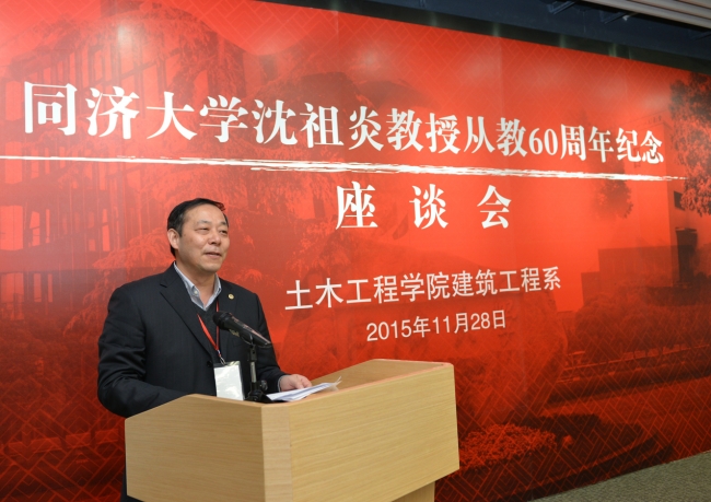 Faculty of Tongji University has witnessed the consistent inspiring presence of Professor Shen Zuyan, a member of the Chinese Academy of Engineering, in teaching and research over the last six decades. A meeting was held by Department of Construction Engineering, College of Civil Engineering to commemorate the 60th anniversary of Shen's teaching career on November 28th. About 100 people, including his previous students and teacher and student representatives from the Department, gathered together to share their sentiments of deep respect and appreciation for his personality as well as his significant contributions that the academician has put forward in his teaching and research.