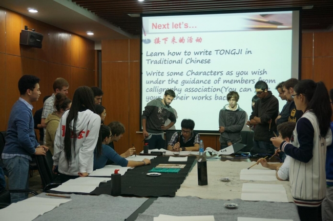On the eve of October 29, Jiading library was full of fragranced ink where students from all over the world participated in the event of Chinese calligraphy, it is one of the many culture-experiencing activities for International students; "Once in China, Love my Jiading". There were many volunteers that helped organize and be part of this wonderful event. Students got the chance to know not only the Chinese culture but also the history of Chinese characters. During their writing practice, they started to recognize and appreciate the Chinese characters and hence culture enhancement from the International students. This event couldn’t have been possible without Library of Jiading Campus, and the Ink Cabin of Calligraphy Association and English Corner from Jiading Campus jointly organized it.