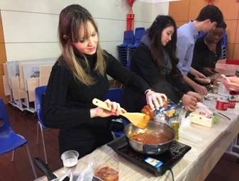During the event, residents presented more than 30 dishes from eight major cuisines such as Sichuan, Shandong, Huaiyang. Our international students presented more than 20 dishes from five countries: Spain, Italy, Yemen, Dominica and South Korea. Chefs and international students who are gourmets tasted and made comments about each dish. The best dishes were awarded certificates. Then, a professional chef demonstrated how to make Chinese food. All of the dishes were enjoyed together by the residents and the international students who participated in this event. The students were very proud and happy to see the homemade local food of their motherland eaten-up.