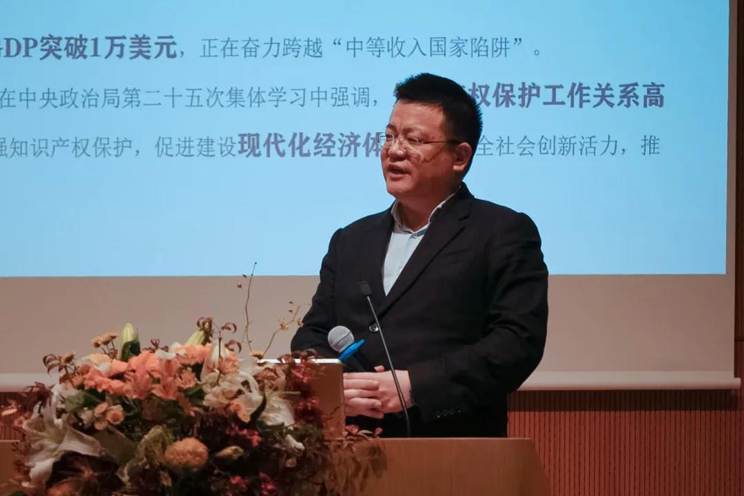 Mr. MU Rongping, President of CASSSP, President of the China High-Tech Industry Promotion Society and researcher at the CAS Institute of Science and Development, made a comprehensively analysis of the paradigm combining the innovation-driven development strategy with intellectual property from the three perspectives of innovation-driven development, intellectual property policies and intellectual property governance, including how intellectual property policies can help shape competitive edge and fortify systematic innovation capabilities. In the meantime, he also contributed constructive suggestions for the entire knowledge production processes in colleges and universities. Citing "core position" and "self-reliance", two key words mentioned in the Communiqué of the Fifth Plenary Session of the 19th CPC Central Committee, he held that technological innovation plays a pivotal role in China's push for modernization and stressed that efforts must be put in place to deepen institutional reforms, to build an enabling environment for intellectual property protection, to improve the quality of intellectual property examination, to extend the capabilities of the patent operation and service system, and to ratchet up the fostering of intellectual property professionals.