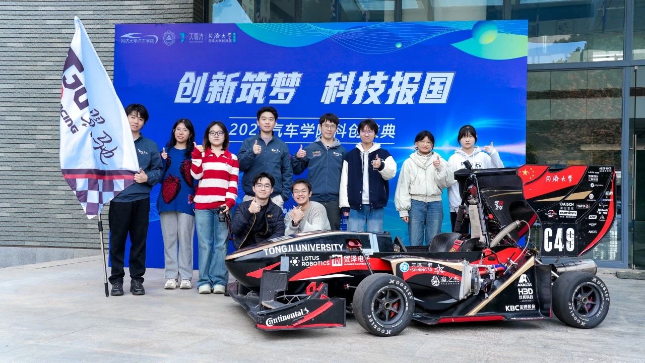 盛典上,校党委学研工部、嘉定校区管委办、同济科技园嘉定园、汽车学院负责人为本年度在学术科研、学科竞赛、科创服务中表现突出的同学颁发了“科创之星”证书和奖杯,表彰他们在科技创新领域的优异表现;为年度车队——志远车队颁发奖杯,作为本年度协办单位,同济科技园嘉定分园为年度车队提供众创空间一年免费使用权;为2025赛季各车队队长、顾问颁发聘书。来自上海瀛之杰汽车信息技术有限公司、上海汉邦联航激光科技有限公司、上海嘉利扬科技发展有限公司、猛禽电子科技有限公司、上海济美动力科技有限公司、上海青浦汽车检测修理中心有限公司、上海同驭汽车科技有限公司、先临三维科技股份有限公司、艾仕得涂料系统(上海)有限公司的车队赞助商代表为2024年度优秀车队队员颁发证书。