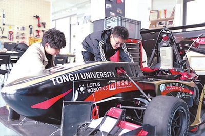 同济大学汽车学院学生正为一辆燃油方程式赛车…