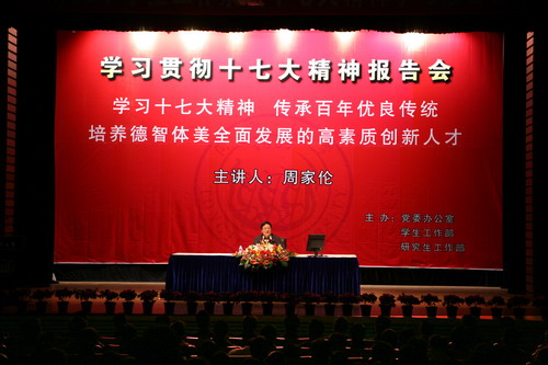 11月20日下午,学校学生工作体系在129礼堂举行了学习贯彻十七大精神辅导报告会,邀请校党委书记周家伦同志给部分辅导员和学生党员做专场辅导报告。 周家伦书记曾赴北京参加十七大会议,他首先结合参加十七大…