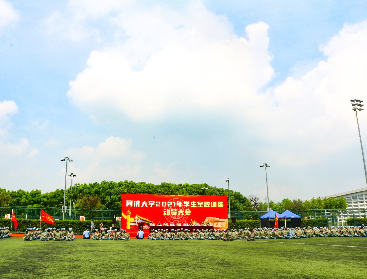 8月28日,同济大学2021年学生军政训练动员大会分别在四平路校区人工草坪和嘉定校区足球场举行。校党委副书记、军训工作领导小组组长彭震伟,部队首长张峰,同济大学军训旅参谋长易招文,军训旅一团团长周洵,军训…