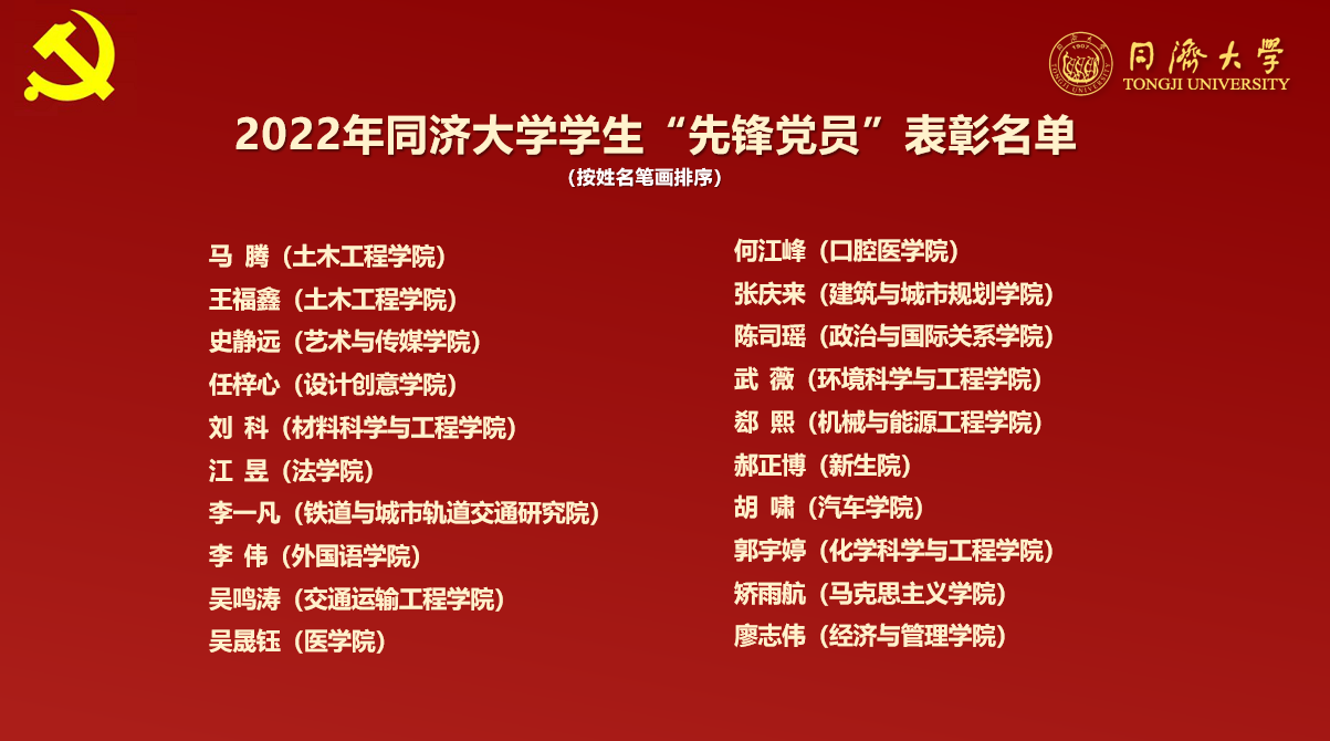 7月5日,同济大学学生党建“七·一”主题党日活动在线举行。校党委副书记彭震伟,党委学研工部、党委组织部、党委宣传部、校团委负责人及各学院党委副书记、学生党支部书记、毕业生党员及新入党党员代表参加活动…