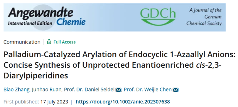 化学科学与工程学院陈伟杰课题组通过钯催化环内1-氮杂烯丙基负离子的芳基…