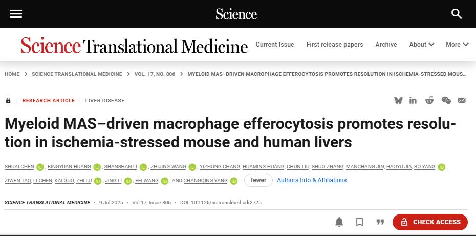 附属同济医院杨长青团队发现肝脏缺血再灌注损伤中的关键机制,成果发表于…
