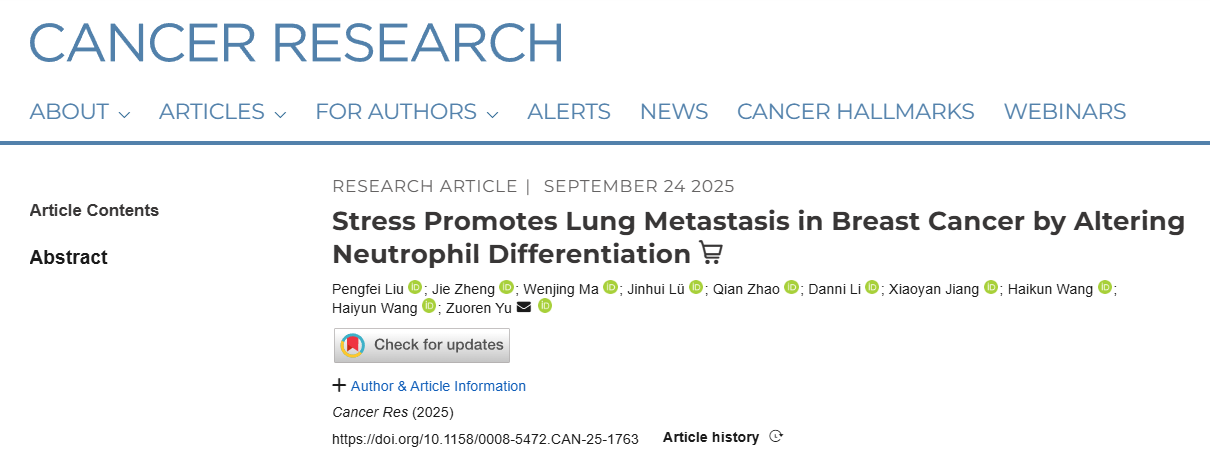 乳腺癌是全球女性中最常见的恶性肿瘤,其致死性主要原因是远处转移。除内分泌异常、基因突变、环境等因素外,精神压力近年来被证明是影响乳腺癌发生和进展的重要危险因素之一。临床研究和动物模型均显示,慢性精神…