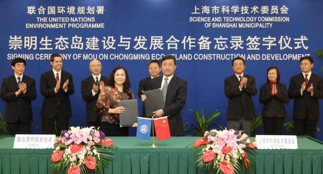 11月24日,上海市科委与联合国环境规划署(UNEP)就崇明生态岛建设与评估在沪签署合作备忘录。上海市副市长沈晓明出席仪式并讲话。上海市科委、崇明县政府、崇明科技促进中心、UNEP区域合作司、UNEP驻中国办公室、联合国环境规划署-同济大学环境与可持续发展学院(IESD)等部门代表出席。