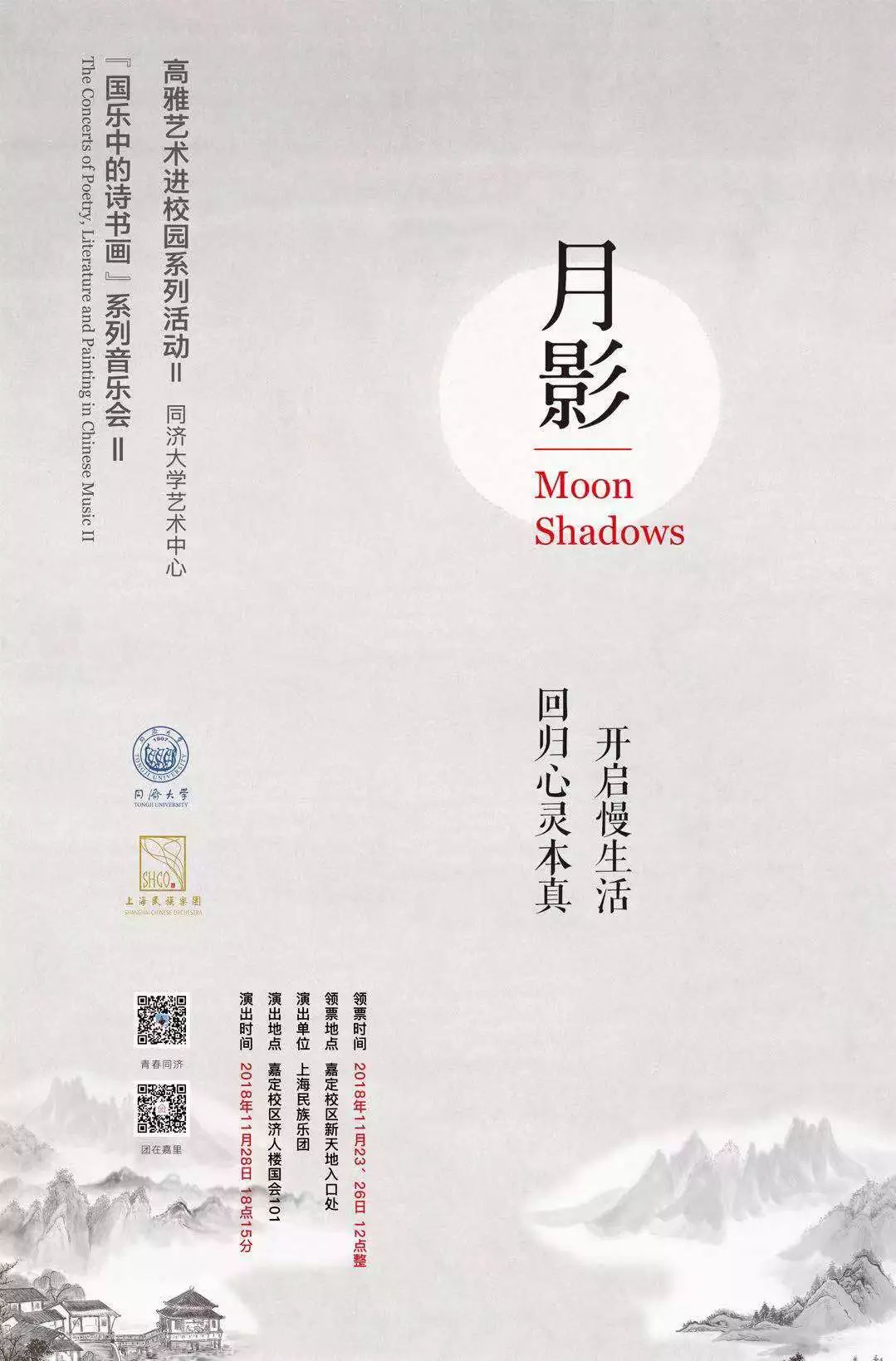 《月影》是以“月”为主题的音乐会,是对明月的抒怀。李白、张若虚、苏轼咏叹的月亮,也是我们今天仰望的月亮,音乐会通过一首首月亮主题的古诗,以民族音乐的多种表达抒发不同的月之情怀,有历史的回响,更有当代的表达。
