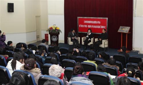 揭牌仪式后,敦煌网创始人、前卓越网创始人,著名女性创业家王树彤女士以她自身的成长经历和所思所悟,与在座学生分享了创业经验和感悟。她的创业经历对大学生的成长与创业意识的开拓带来了重要的启发与指导。她鼓励在座所有女生敢于创业、勇于开拓个人事业:“理想高远,脚踏实地”。她说,同济大学素以“严谨”、“求实”自立自勉,但在当今充满机遇和挑战的社会中,若能在刻苦学习的同时,志向高远、面向未来,让自己的梦想启航、积极挑战自我,一定会在个人的事业发展中取得成功。她那生动而恳切的话语深深吸引了在场每一位学生。