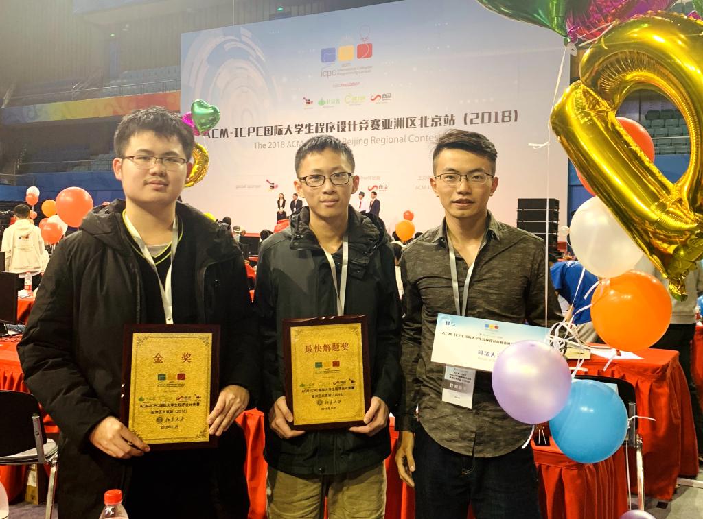 11月12日,第43届ACM国际大学生程序设计竞赛亚洲区比赛在北京大学落下帷幕。本次比赛共有200支参赛队参加,经过5个小时的奋战,来自我校电子与信息工程学院的任秋宇、欧阳小伟、刘毅韬组成的“荠蒻”代表队,继南京站之后再次夺得金奖。