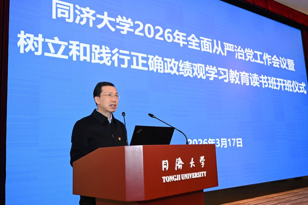 3月17日下午,同济大学2026年全面从严治党工作会议暨树立和践行正确政绩观学习教育读书班开班仪式举行,深入学习贯彻习近平总书记在二十届中央纪委五次全会上的重要讲话精神、2026年教育系统全面从严治党工作视频会议精神、十二届上海市纪委五次全会精神,总结2025年学校推进全面从严治党工作取得的新成效,部署2026年重点任务,扎实开展树立和践行正确政绩观学习教育,全面推进学校全面从严治党向纵深发展,为学校“十五五”高质量开局提供坚强政治保障、组织保障和作风保障。
